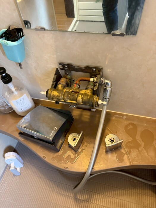 既存の水栓は内部部品の摩耗と錆が進行しており、使用時に温度が安定しない状態でした。